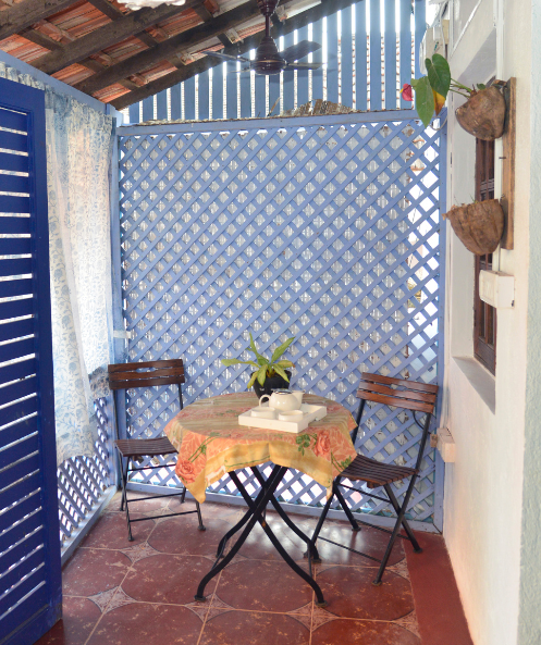 In the Latin quarter of Panjim, next to a beautiful chapel and a wishing well. Stands a lovely Portuguese style house on the charming Rua de Natal. Charmingly decorated with balconies for every bedroom and a cafe style sitting room , the location still is the USP of the property. Within walking distance of the casinos, bars, restaurants, boutiques and the glorious waters of Mandovi flowing into the ocean, Fontainhas has seen a glorious regeneration in the last few years. This is very much the vibrant cultural and food centre of Goa. There are heritage buildings, art galleries, the great Kala Academy for performing arts, centuries old bakeries and the complete authenticity of Portuguese era Goa. The house has 3 en-suite bedrooms and is fully serviced.